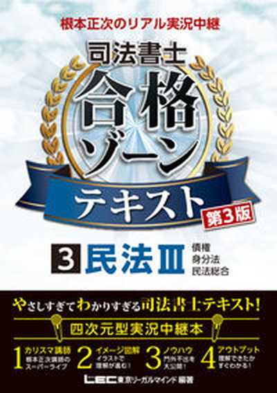 根本正次のリアル実況中継司法書士合格ゾーンテキスト 3 第3版/東京リ-ガルマインド/根本正次(単行本) 中古