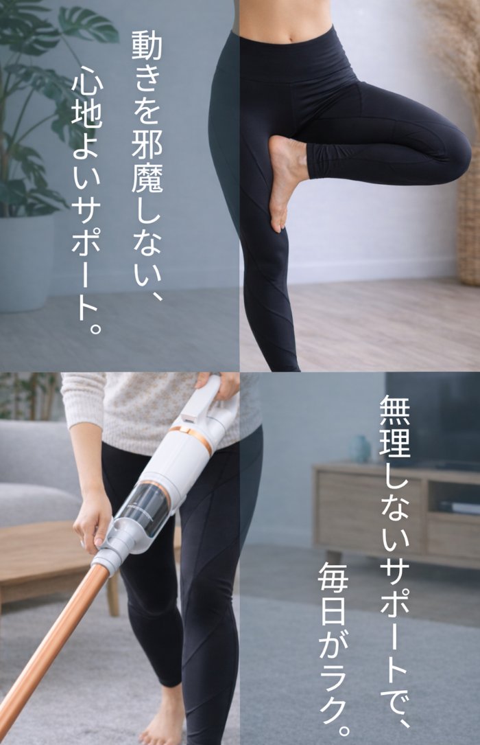 ヒップアップ:腹部から太ももまでを履くことでスッキリ引き締め、ヒップの周りを潰さず包み込む立体裁断で理想的なヒップラインを形成するサポートをしてくれます。