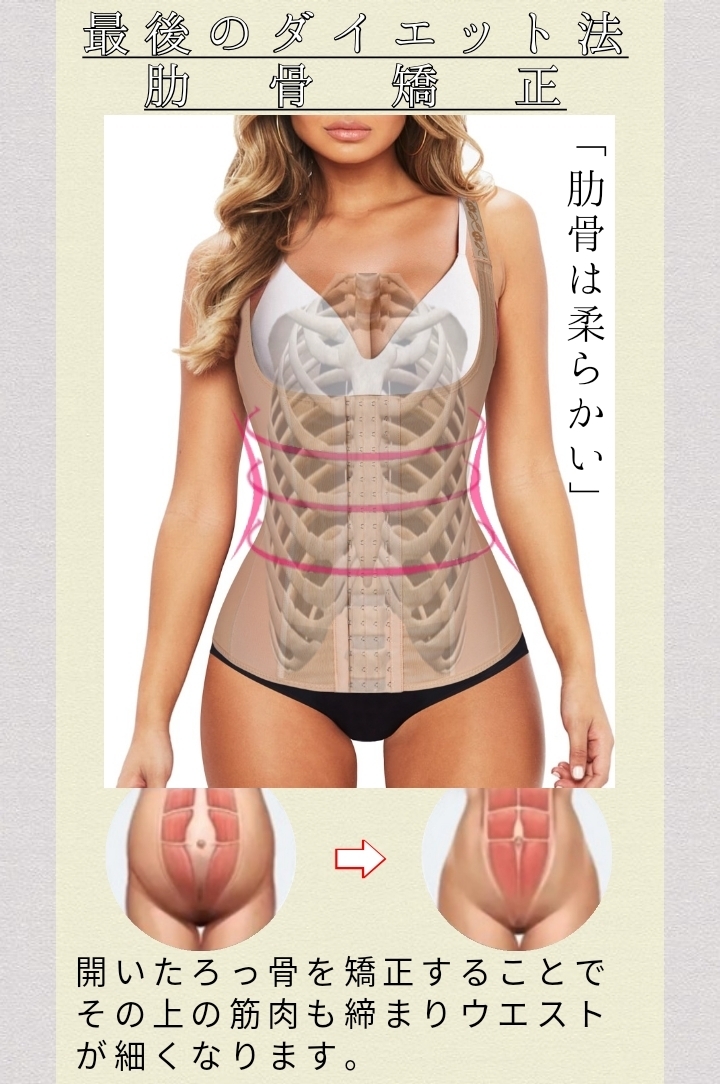 コルセットは開いたろっ骨を締める事で骨格を矯正します。
