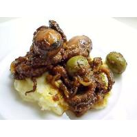柔らかい明石の子ダコをグリーンオリーブと共にトマトで煮込みました。