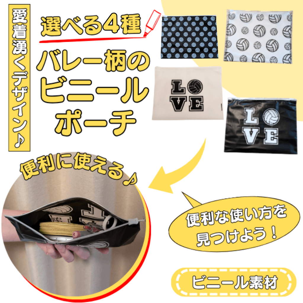 バレー グッズ 雑貨 プレゼント イベント 卒業 部活 ギフト 記念品 学校 愛着湧くバレー柄ビニールポーチ 1枚