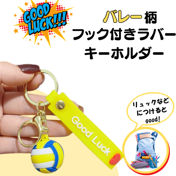 バレー グッズ 雑貨 プレゼント イベント 卒業 部活 ギフト 記念品 学校 子供 グッドラックラバーとミニ鈴付き ゴムバレーボールフックキーホルダー