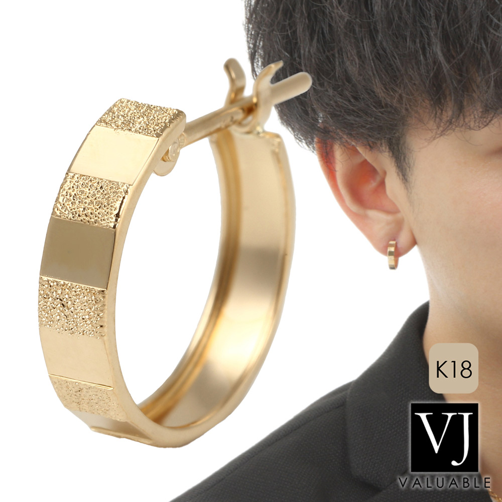 | K18 イエローゴールド 「Jester ダブルテクスチャー」 フープ ピアス ※1個販売(片耳) | |
