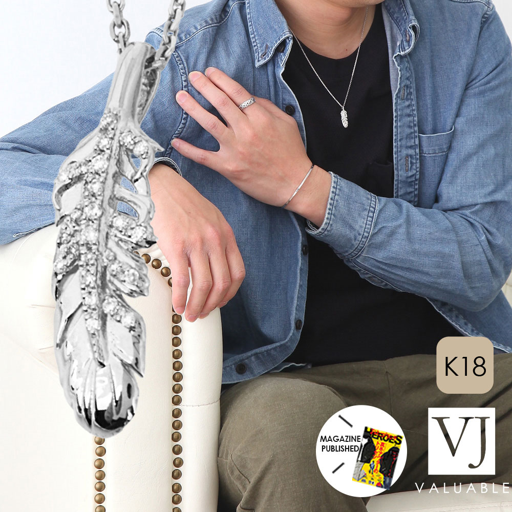 | K18 ダイヤモンド ホワイトゴールド メンズ フェザー ペンダント『Bセット』 | |