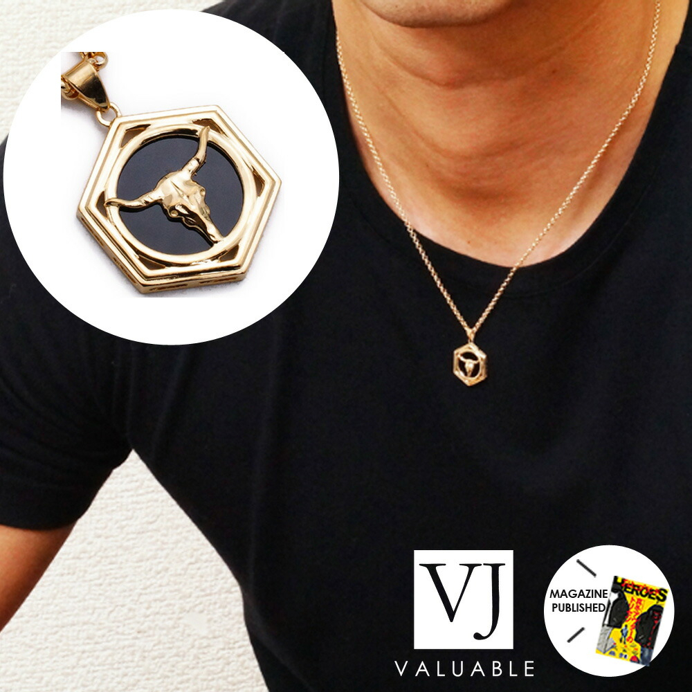 | K18 メンズ イエローゴールド オニキス ローズ バッファロー スカル ペンダント 『Aセット』 | |