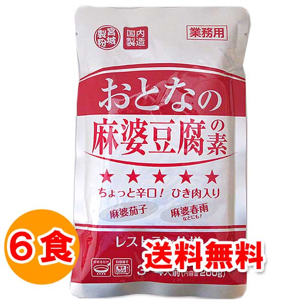 3000円ポッキリ 3000えん以下 送料無 おとなの麻婆豆腐の素 ちょっと辛口 200g(3〜4人前)×6袋 ひき肉入り レトルト マーボー豆腐 お取り寄せ