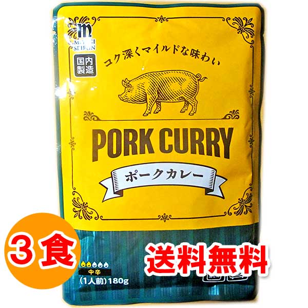 1000円ポッキリ 1000えん以下 送料無 食品 レトルトカレー ポークカレー 中辛 180g×3食 カレーレトルト 美味しい お取り寄せ