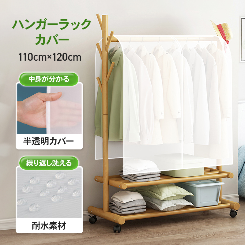ハンガーラックにかぶせるだけで、大切な洋服をほこりや汚れ、虫から守る便利なカバーです。