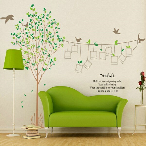 ウォールステッカー 木 北欧 花 植物 フォトフレーム おしゃれ 子供部屋 カフェ 写真 英字 緑 グリーン 鳥 2枚入り 玄関 特大 大きな木 リビング 高級感 vr0001