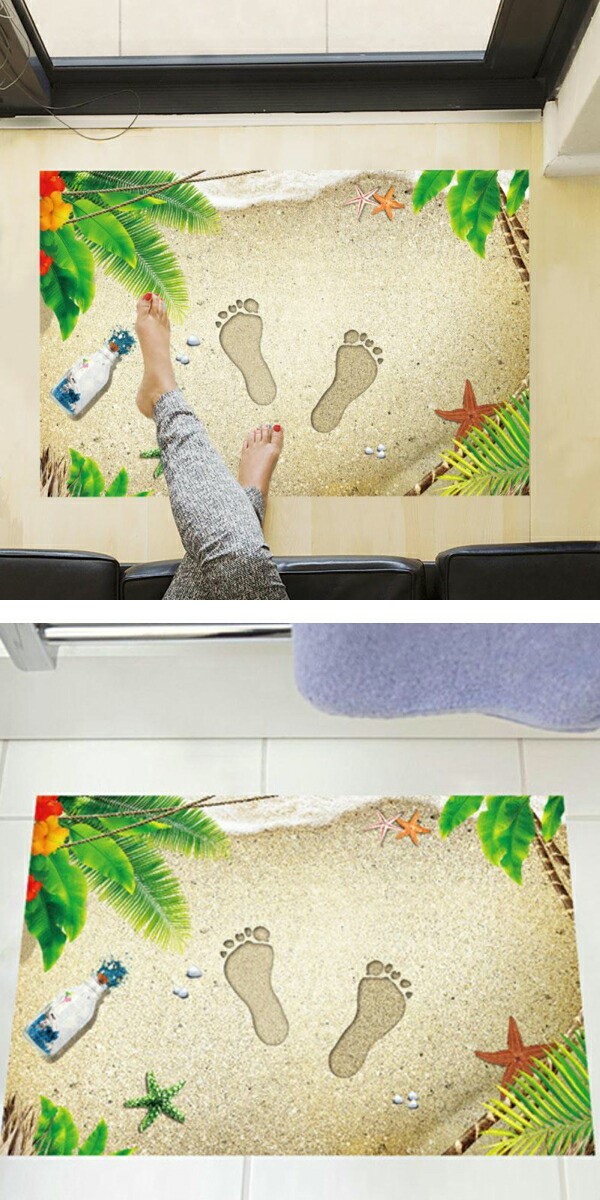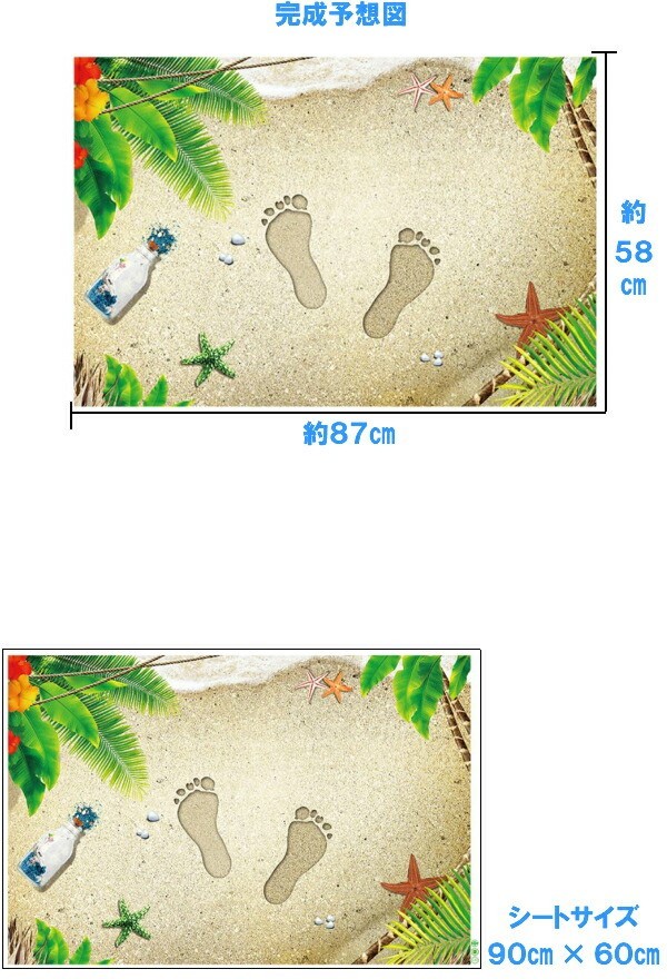 ウォールステッカー 海 ビーチ 南国 砂浜 海岸 浜辺 夏 波 さざ波 壁紙 お風呂 トイレ キッチン 足跡 おしゃれ ハワイ インテリア 床 ブルー リゾート vr01454