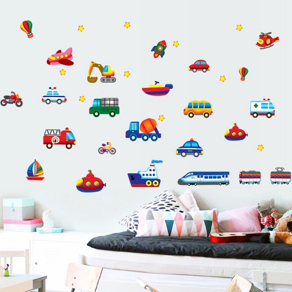 ウォールステツカー 子供部屋 車 男の子 女の子 誕生日 かわいい 子ども 子供 知育 ステッカー お風呂 シール バスルーム 車 自動車 電車 消防車 壁紙 vr01687