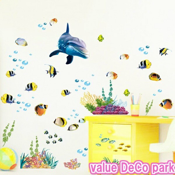ウォールステッカー 動物 子供部屋 イルカ 海 魚 ステッカー トイレ 子供 おしゃれ 壁紙 クジラ 風景 窓 青い 海底 海の中 ブルー かわいい 海中 お風呂 vr01942