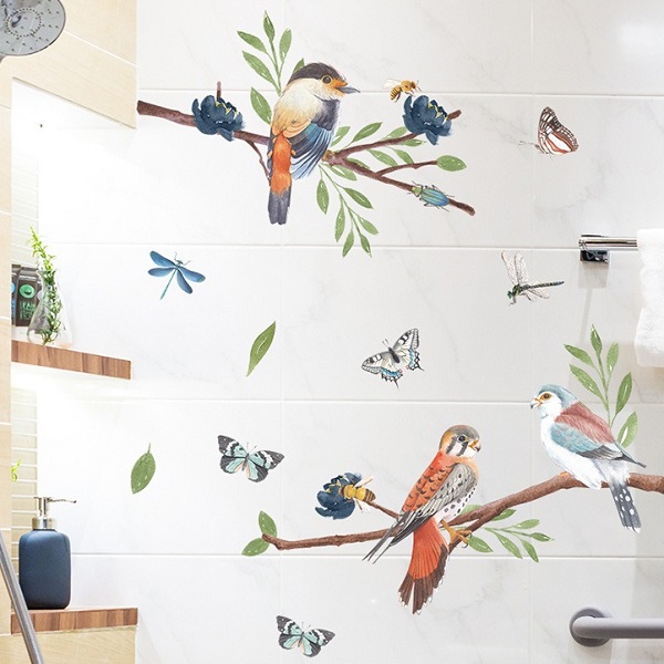 可愛いウォールステッカー 小鳥 壁紙 蜂 玄関 キッチン トイレ インテリア かわいい 窓 ガラス 扉 野鳥 葉 枝 森 階段 自然 風景 景色 ワンポイント ミニ