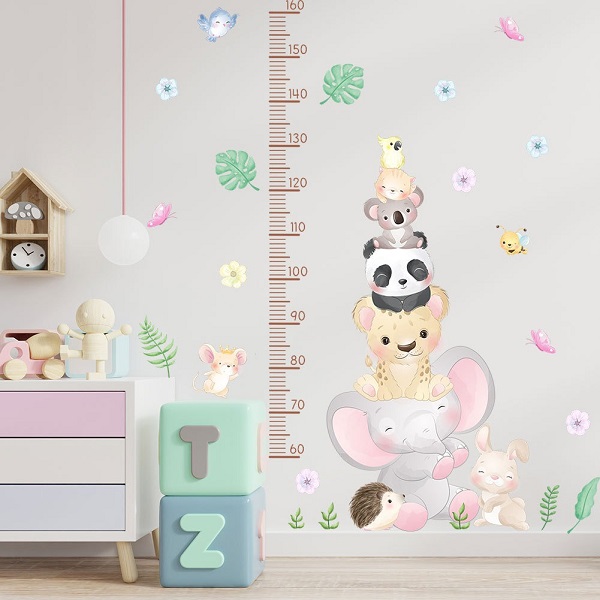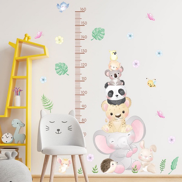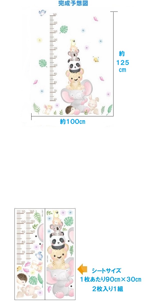 ウォールステッカー 身長計 動物 身長 子供部屋 誕生日 子供 ベビー 植物 かわいい 女の子 壁紙 シール ピンク 黄色 青 トイレ キッチン 賃貸 はがせる vr03033