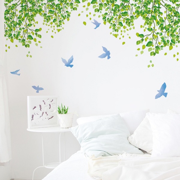 ウォールステッカー 木 北欧 植物 おしゃれ 花 グリーン 緑 青 ブルー 森 葉っぱ 爽やか カフェ 鳥 鳩 ハト トイレ アイビー リーフ 壁 シール 壁紙 vr03080