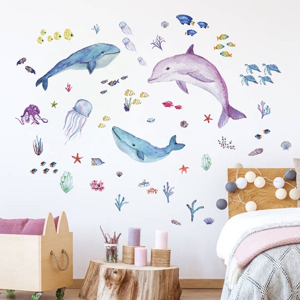 ウォールステッカー 動物 海 魚 イルカ くじら クラゲ 海亀 カニ 壁紙 シール 子供部屋 サンゴ はがせる 海の様子 かわいい グラデ トイレ くらげ 珊瑚 vr03146