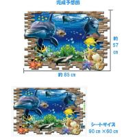 ウォールステッカー イルカ 海 動物 ステッカー 海中 子供部屋 トリックアート 子供 壁紙 風景 窓 海底 シール 青い ブルー かわいい 癒し系 魚 vr0555
