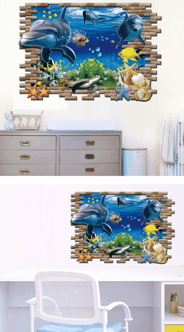 【ウォールステッカー イルカ】 動物 アニマル かわいい 海豚 珊瑚礁 ダイビング スクール 遊泳 教室 気泡 泡 小魚 海の中 賃貸 剥がせる 店 かわいい 癒し系 魚 亀 ウミガメ サンゴ礁 3d フィッシュ 波 ウオールステッカー 景色 diy 知育 大きい レンガ キッズ 浴室 水族館