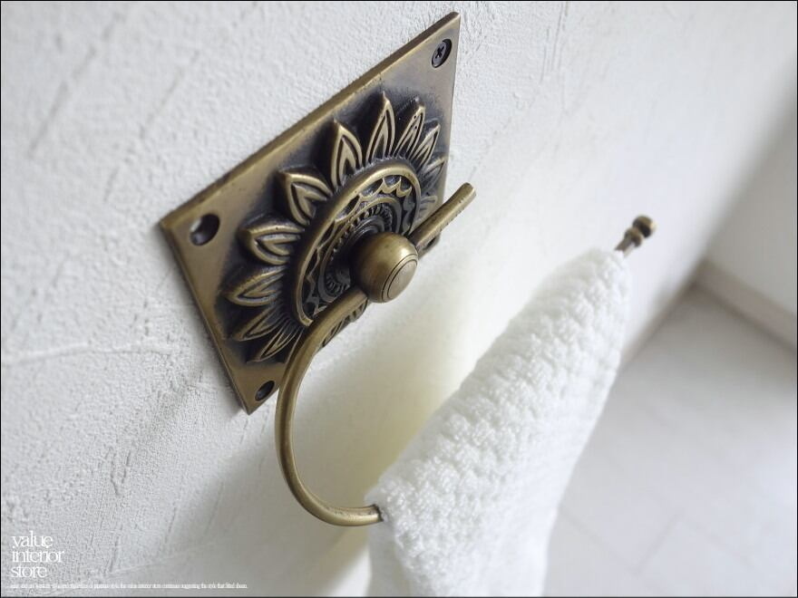 真鍮タオル掛け/フラワー 壁掛け タオルハンガー ブラス レトロ調 真鍮タオルホルダー 新品 タオルかけ エスニック バス&トレイ用品 ◆V_S