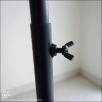 ■高さを調整する際は、必ず蝶ネジを緩めてから高さを決め、しっかりと固定して下さい。蝶ネジを緩めずにスタンドをスライドさせると支柱部分に傷がつく恐れがありますのでご注意下さい。