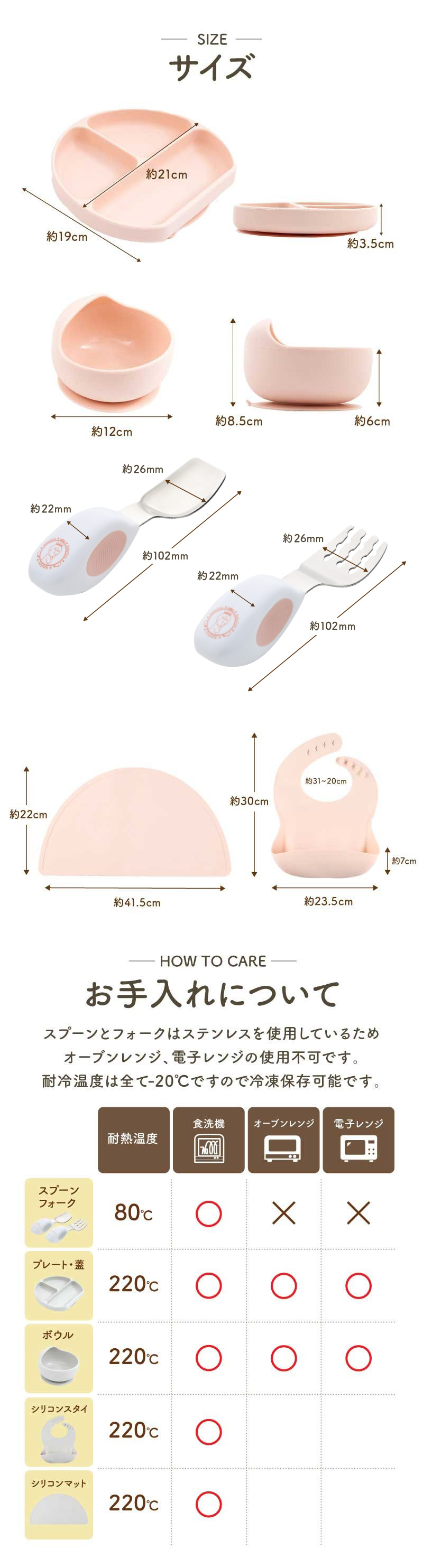 さらに、ご要望の多かった「プレートの蓋」「ランチョンマット」「シリコンスタイ」を追加して豪華7点セットに!