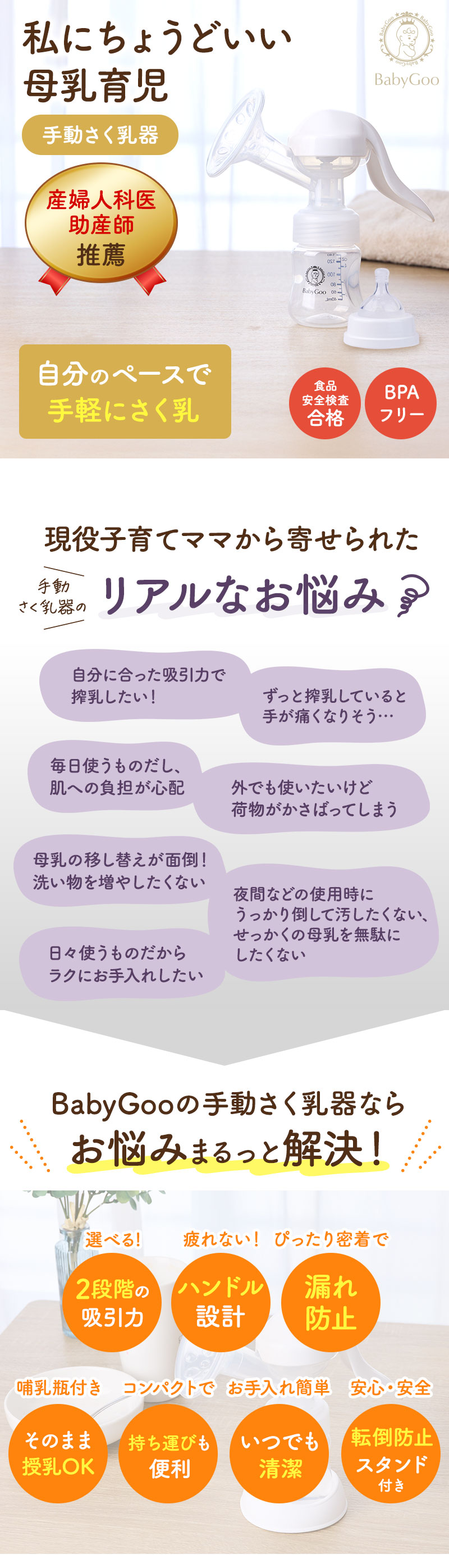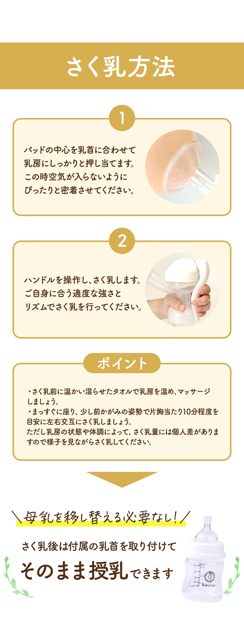 BabyGooの手動さく乳器で母乳育児をもっと楽しく、もっと自由に。