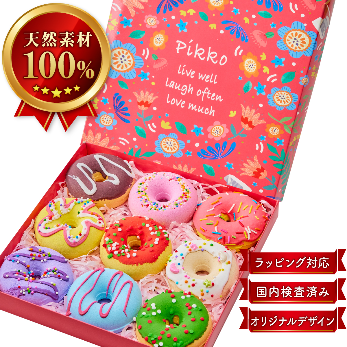 バスボム ドーナツ9個セット 入浴剤 手作り ギフト サプライズ プレゼント 誕生日 ギフトBOX付き 女性 人気 FDA認証 成分検査済み