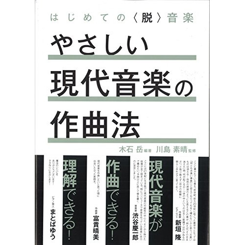 やさしい現代音楽の作曲法1 . ■第1章:<脱>調性 ~グッバイ、美しい響き~/2 . コンセプト/3 . 1)無調/4 . 2)十二音技法/5 . 3)トータル・セリエリズム/6 . 4)ポスト・セリエリズム/7 . ■第2章:<脱>作曲 ~ほとんど作曲しない~/8 . コンセプト/9 . 1)アルゴリズム作曲/10 . 2)偶然性の音楽/11 . 3)即興演奏と不確定性/12 . 4)ミニマリズム/13 . 5)アンビエント/14 . 6)引用とモザイク/15 . ■第3章:<脱>音色 ~知らない響きを求めて~/16 . コンセプト/17 . 1)新しい奏法と記譜/18 . 2)クラスター/微分音・・・/19 . 3)電子音楽/20 . 4)スペクトル音楽/21 . 5)ノイズ音楽/22 . ■第4章:<脱>音楽 ~もはや音楽ですらない~/23 . コンセプト/24 . 1)ミュージック・コンクレート/25 . 2)サウンド・スケープ/26 . 3)シアター/身体表現/27 . 4)コンセプチュアリズム/28 . 5)フルクサス/29 . ■付録: OpenMusic