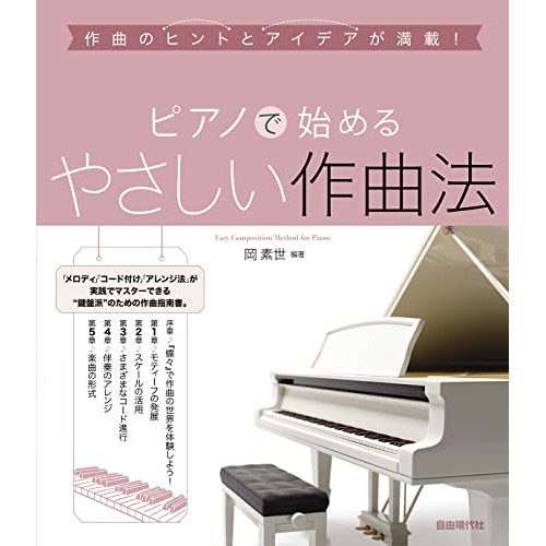 ピアノで始めるやさしい作曲法1 . ◆序章 『蝶々』で作曲の世界を体験しよう!/2 . コードを変身させる/3 . メロディを変身させる/4 . 「○○風」に変身させる/5 . Column ~クラシック名曲にみる魅惑的なコード展開~/6 . ◆第1章 モティーフの発展/7 . 作曲と一口にいっても…/8 . コードトーンとノンコードトーン/9 . とりあえずメロディを作ってみる/10 . いよいよメロディらしいものを…/11 . 2小節単位のモティーフ/12 . 細かい音符のフレーズ/13 . 名曲に学ぼう1『裸の心』/14 . メロディのカーブを意識しよう/15 . アウフタクトとシンコペーション/16 . 歌のメロディを作るときは…/17 . 名曲に学ぼう2『いとしのエリー』/18 . Column ~クラシック名曲にみるモティーフ作りのヒント~/19 . ◆第2章 スケールの活用/20 . メジャー・スケールとマイナー・ス