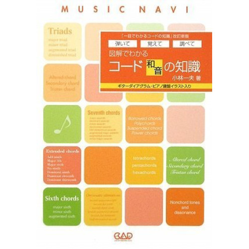 図解でわかるコード(和音)の知識(音楽書)1 . Chapter 1 楽譜/2 . Chapter 2 音楽用語/3 . Chapter 3 主要三和音/4 . Chapter 4 コード・タイプ/5 . Chapter 5 ダイアトニック・コード/6 . Chapter 6 コード進行/7 . Chapter 7 コード・スケール/8 . Chapter 8 分数コード/9 . Chapter 9 テンション・コード/10 . Chapter 10 調/11 . Chapter 11 音楽用語/12 . Chapter 12 コード用語/13 . Chapter 13 コードの奏法/