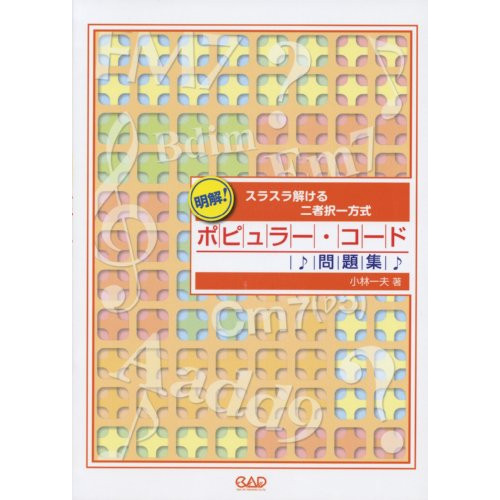 明解!ポピュラー・コード問題集1 . (出題項目・要約)/2 . ■1.楽譜:五線譜/タブラチュア/音部記号/3 . ■2.音楽用語:音名/音程/トライアド/コード/コード・ネーム/コード・トーン/ノン・コード・トーン/ハーモニー/4 . ■3.主要3和音:トニック・コード/サブドミナント・コード/ドミナント・セブンス・コード/副三和音/代理和音/5 . ■4.コード・タイプ:コードタイプ24(メジャー・コード、マイナー・コード、ドミナント・セブンス・コード/6 . ■5.コード進行:五度圏/ドミナント・モーション/ツー・ファイブ・モーション/ケーデンス/偽終止/循環コード//7 . 逆循環コード/パッシング・ディミニッシュ・コード/半音進行/カウンター・ライン/クリシェ/ブルース・コード進行/8 . ■6.スケール:コード・スケール/スケール・ノート/ダイアトニック・