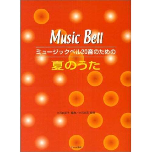 ミュージックベル20音のための夏のうた1 . ◆夏の食べもの/2 . フルーツサラダのうた(使用ベル:13本+ピアノ)/3 . とんでったバナナ(使用ベル:14本+ピアノ)/4 . 山のごちそう(使用ベル:12本+ピアノ)/5 . アイスクリームのうた(使用ベル:14本+ピアノ)/6 . すいかの名産地(使用ベル:12本)/7 . ◆夏の遊び/8 . しゃぼん玉(使用ベル:11本)/9 . 水あそび(使用ベル:11本)/10 . ◆時の記念日/11 . 鐘がなる(使用ベル:11本)/12 . 時計の歌(使用ベル:13本)/13 . 大きな古時計(使用ベル:13本)/14 . ◆父の日/15 . グリーン・グリーン(使用ベル:12or13本)/16 . おとうさんの足音(使用ベル:13本+ピアノ)/17 . ◆七夕/18 . 七夕さま(使用ベル:11本)/19 . 星の世界(使用ベル:13本)/20 . ◆キャンプ/21 . アルプス一万尺(使用ベル:12本)/22 . 静かな湖畔(使用ベル:10本)/23 . 世界一周(使用ベル:11本)/24 . 山