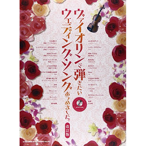 ヴァイオリンで弾きたいウェディング・ソングあつめました。(カラオケCD付)(改訂版)1 . とびら開けて/2 . レットイットゴー~ありのままで~/3 . 生まれてはじめて/4 . ホールニューワールド/5 . いつか王子様が/6 . スマイル/この素晴らしき世界/7 . 君の瞳に恋してる/8 . SHE/9 . ラヴィンユー/10 . サンシャイン/11 . 愛の讃歌/12 . はじめてのチュウ <ジャズ・バージョン>/13 . ベイビーアイラブユー/14 . 家族になろうよ/15 . BUTTERFLY/16 . ありがとう/17 . STORY/18 . 心を込めて花束を/19 . らいおんハート/20 . ハナミズキ/21 . 恋するフォーチュンクッキー/22 . 乾杯/