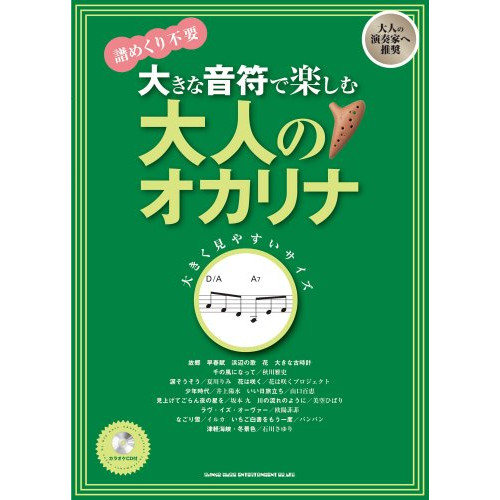 大きな音符で楽しむ/大人のオカリナ(カラオケCD付)1 . 故郷/2 . 早春賦/3 . 浜辺の歌/4 . 花/5 . 大きな古時計/6 . 千の風になって/7 . 涙そうそう/8 . 花は咲く/9 . 少年時代/10 . いい日旅立ち/11 . 見上げてごらん夜の星を/12 . 川の流れのように/13 . ラヴ・イズ・オーヴァー/14 . なごり雪/15 . いちご白書をもう一度/16 . 津軽海峡・冬景色/