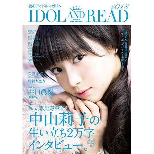 IDOL AND READ 018(音楽書)1 . 中山莉子 私立恵比寿中学/2 . 井口眞緒 日向坂46/3 . 咲良菜緒 TEAM SHACHI/4 . 諸橋沙夏 =LOVE/5 . 春名真依 たこやきレインボー/6 . 春乃きいな ばってん少女隊/7 . ゆらね じゅじゅ/8 . 戸田ころね BLACKNAZARENE/9 . 眉村ちあき/10 . 香椎かてぃ ZOC/