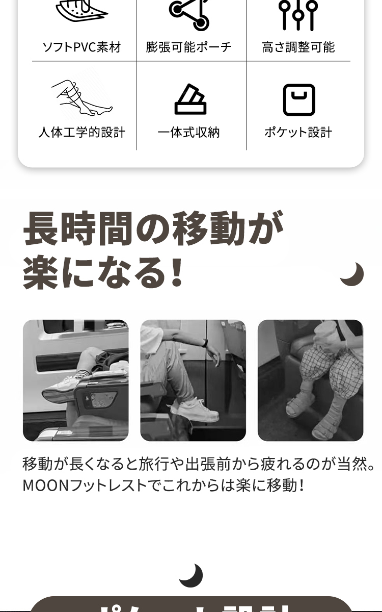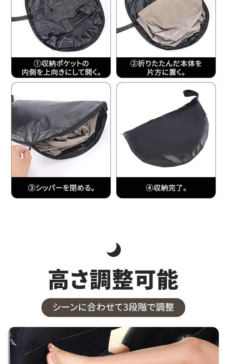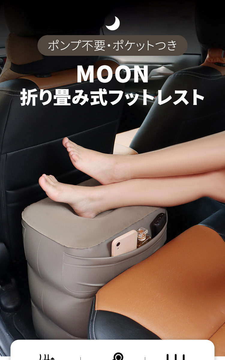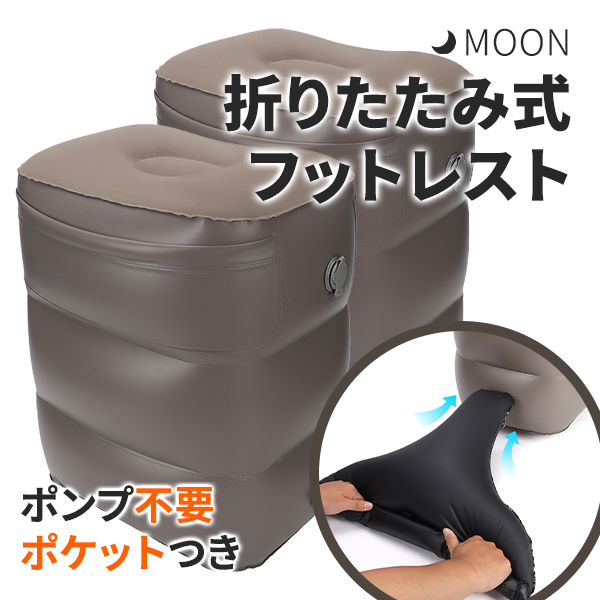 MOON 折りたたみ式 フットレスト PVC 足置き 足枕 飛行機 電車 高速バス オフィス テレワーク 在宅 部屋 旅行 エアークッション 3段階 高さ調節 宅急便