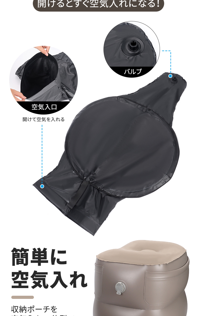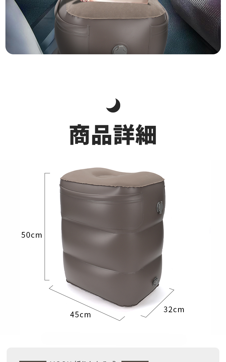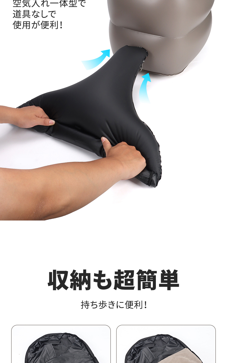 ※当フットレストはトラベルグッズの一貫としてお使いいただくための商品になります。エアソファーとして座って、使用をするのはお勧め致しません。