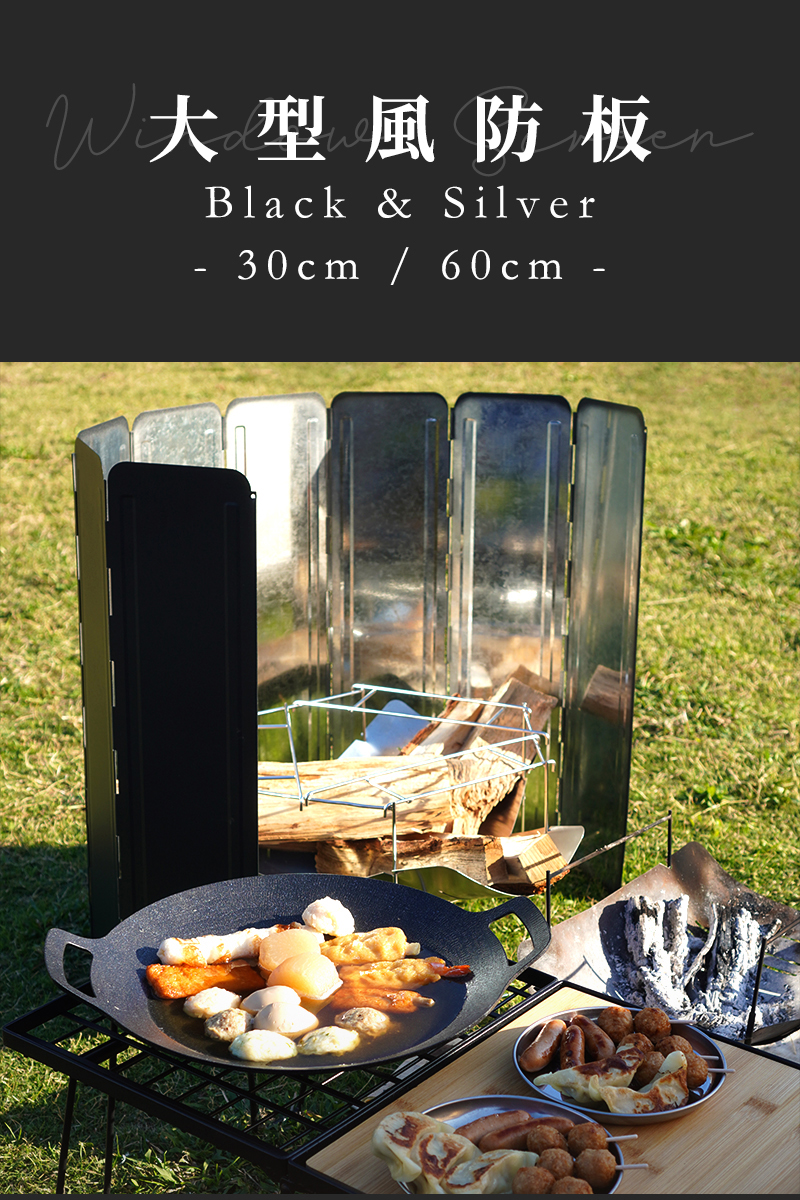 大型風防板 ブラック 防風板 黒 風除板 杭無し 焚き火リフレクター ウインドスクリーン 折り畳み式 風よけ 30cm 60cm 防風 風防 アウトドア 宅急便