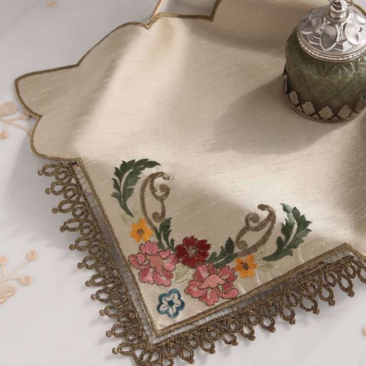 テーブルセンターやティータイムのプレースマットに、花器やオブジェの敷物に、様々な使い方を楽しめるクロスです。