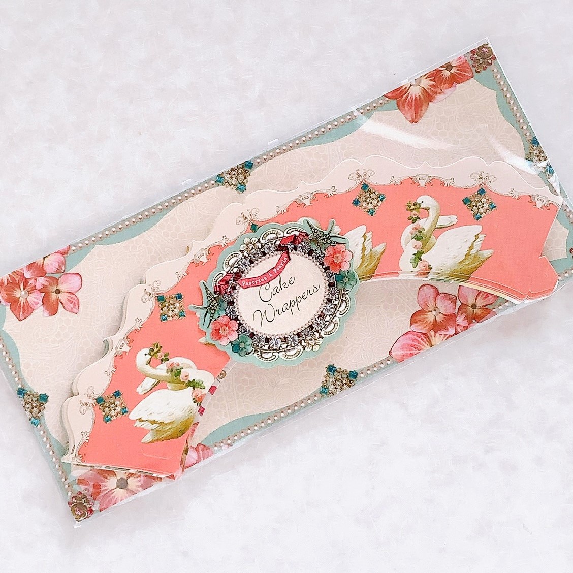 柄はピンクフラワー、イエローローズ、スワンの3種類。 カップケーキにグルっと巻くだけで、簡単&一気にかわいくなります。