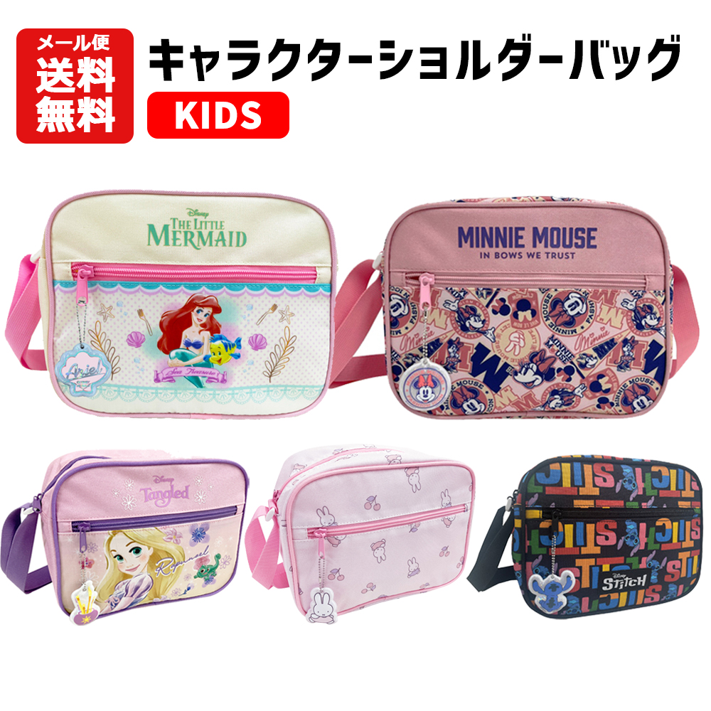 【メール便送料無料】キッズ キャラクター ショルダーバッグ | 肩掛けカバン 通園バッグ ラプンツェル アリエル ミニー スティッチ ミッフィー 入園 おでかけ