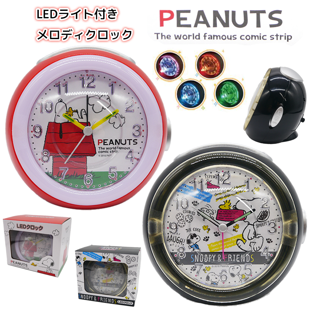 LED ライト付き メロディクロック スヌーピー | 目覚まし時計 アラーム 置き時計 インテリア すぬーぴー ピーナッツ SNOOPY 大人 キッズ ジュニア 2200