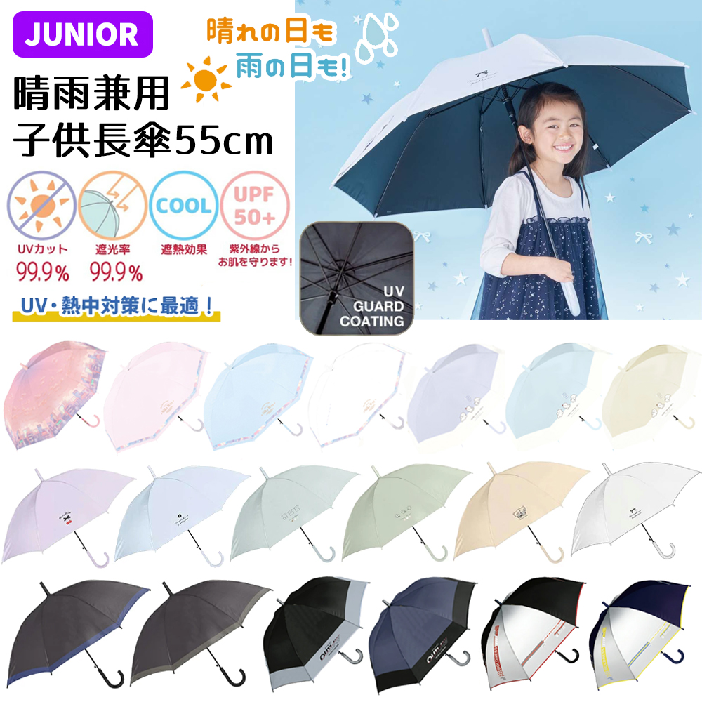 晴雨兼用子供長傘 柄 55cm | ワンポイント シンプル パステルカラー かっこいい 女の子 男の子 長傘 日傘 晴雨兼用傘 晴雨兼用 遮光率99.9% UVカット率99.9%以上