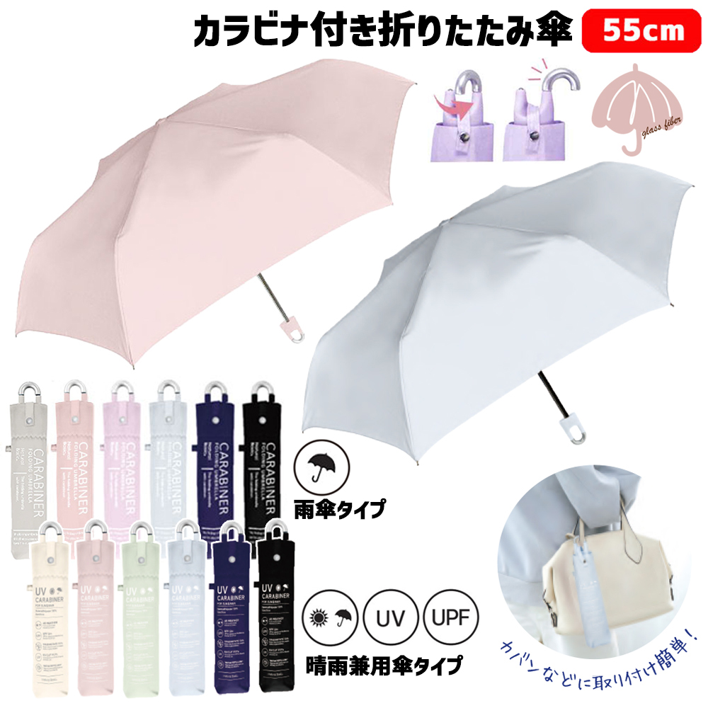 カラビナ付き 無地 折りたたみ傘 55cm | 折り畳み 折畳 おりたたみ 傘 かさ カサ 雨具 雨傘 UVカット 日傘 晴雨兼用 カラビナ手元 キッズ 子供