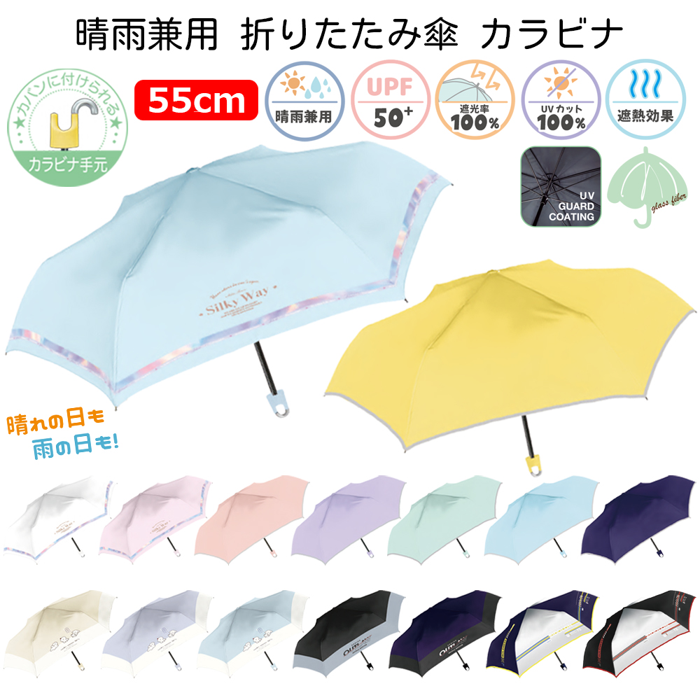 晴雨兼用 折りたたみ傘 カラビナ 55cm | 折り畳み 折畳 おりたたみ 傘 かさ カサ 雨具 雨 日傘 UVカット100% 遮光率100% 完全遮光 通学 小学生 女の子 男の子