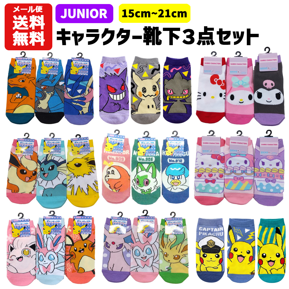 ジュニア 靴下 キャラクター 3足セット 15〜21cm | ポケモン ポケットモンスター ピカチュウ イーブイ ちいかわ ハチワレ サンリオ マイメロ キッズ
