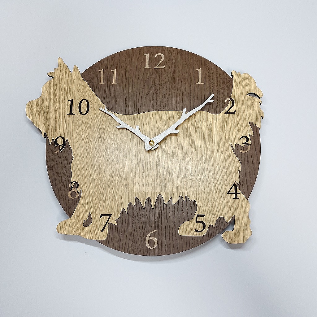 はみだしワンちゃん壁掛け時計 ヨークシャーテリア ベージュ 静音壁掛け時計 おしゃれ 職人が作る日本製 プレゼント 贈り物