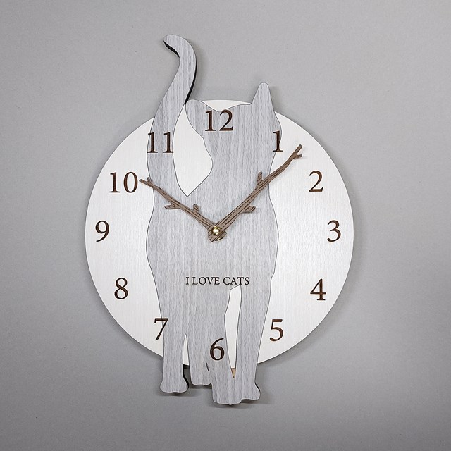 はみだしネコちゃん壁掛け時計 猫(2) グレー ねこ 静音壁掛け時計 おしゃれ 職人が作る日本製 プレゼント 贈り物
