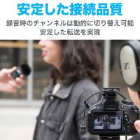 2台の送信機マイクが付属するため、2つの音声をワイヤレスで同時収録可能。