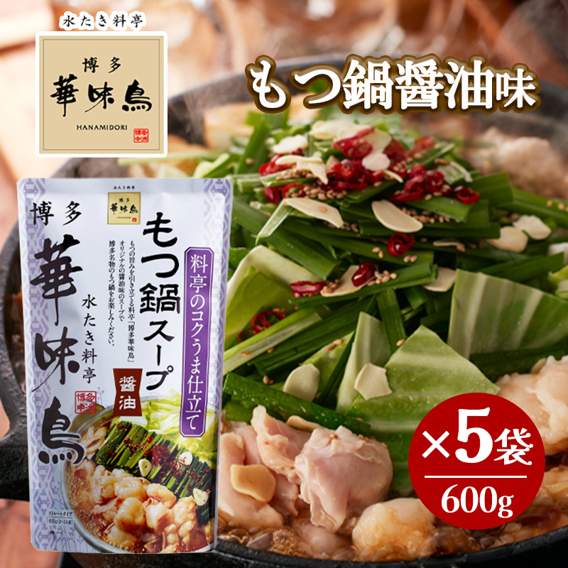 博多華味鳥 もつ鍋スープ 醤油 600g 5袋セット 鍋の素 鍋スープ 鍋つゆ お歳暮 お中元 送料無料